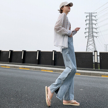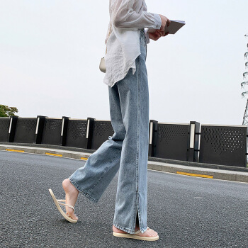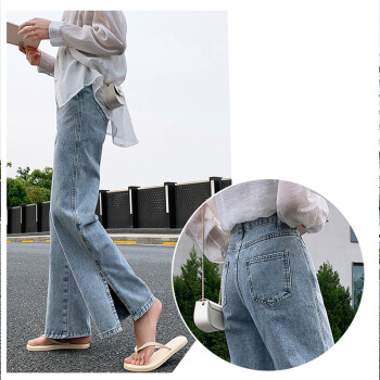 开叉阔腿牛仔裤女直筒宽松泫雅风高腰2020夏季薄款垂感拖地裤 蓝色 XXS |