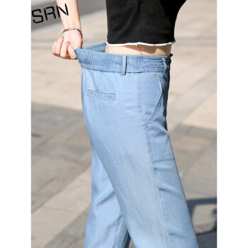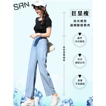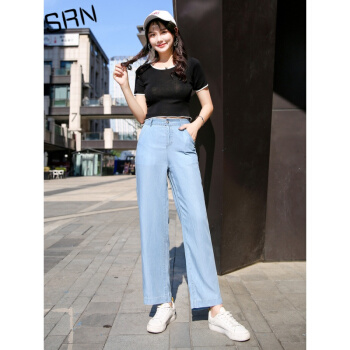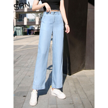 SRN轻奢女装 冰丝阔腿裤女2020新款高腰直筒宽松夏季冰氧吧显瘦显高薄款天丝牛仔裤 浅蓝色 26 |