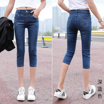 P.E.K.D 2020新款夏季七分牛仔裤女薄款宽松韩版7分裤女弹力修身显瘦中裤 深蓝 28 |