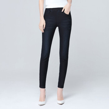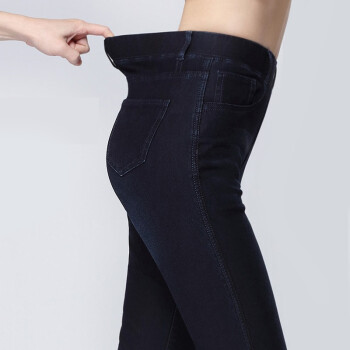 【品质好裤】Hizze女裤春秋牛仔打底裤女外穿高腰松紧腰弹力小脚裤铅笔裤四面弹显瘦牛仔长裤 蓝黑色 请拍正确尺码 |
