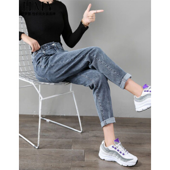【好质量】好梦雅 高腰牛仔裤女裤宽松2020春秋季薄款新款韩版哈伦裤宽松显瘦萝卜女裤子直筒泫雅老爹裤 228款【蓝灰色】 28 【建议105斤-115斤】 |