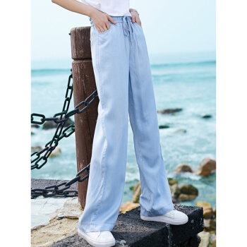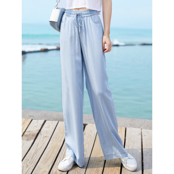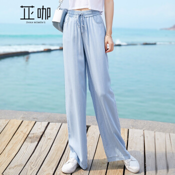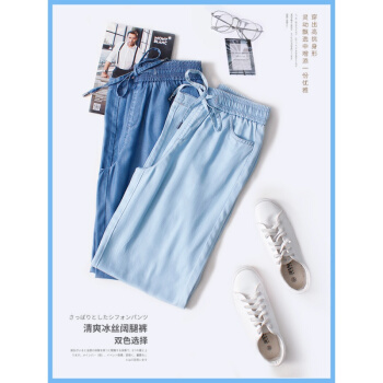 芷咖女裤纯天丝牛仔裤阔腿裤女松紧腰2020年新款夏薄款高腰冰丝裤子垂感直筒宽松长裤 蓝色 28 |