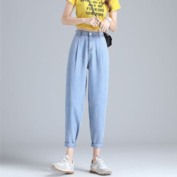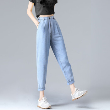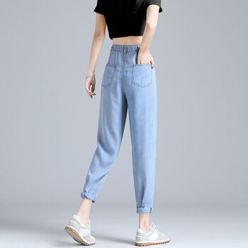 【精选好货】Hizze天丝牛仔裤女裤2020夏季新款薄款宽松高腰显瘦九分萝卜裤冰丝超薄百搭老爹哈伦裤 复古蓝 请拍正确尺码 |