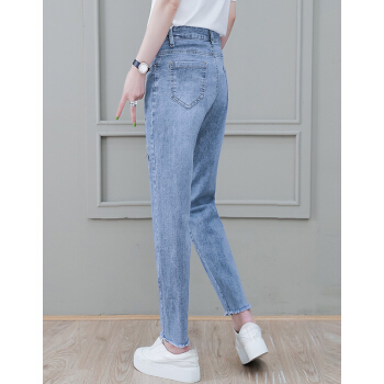 芳帛休闲牛仔裤女高腰宽松显瘦2020夏季新款韩版女裤九分直筒小脚裤潮 蓝色 L |