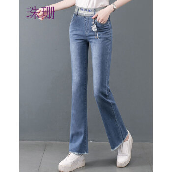 珠珊高腰牛仔裤女2020春秋新款裤子女装阔腿裤拖地裤女长裤直筒裤大码女装垂感休闲裤女 109-蓝色 29码(建议110-120斤左右) |