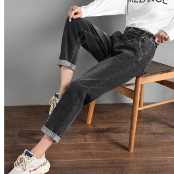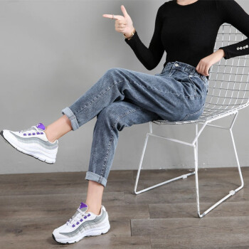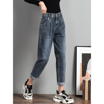 【2件特价】好梦雅 烟灰色老爹牛仔裤女宽松春秋2020年新款韩版显瘦松紧高腰哈伦萝卜裤子 228款【蓝灰色】 28 【建议105斤-115斤】 |