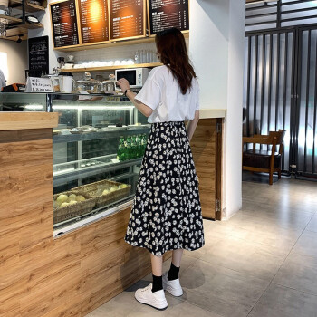 阅樱半身裙女中长款 2020新款女裙雪纺半身裙夏学生小雏菊韩版松紧腰高腰碎花裙下半身裙子蓬蓬裙伞裙 图片色 均码(85-130斤) |