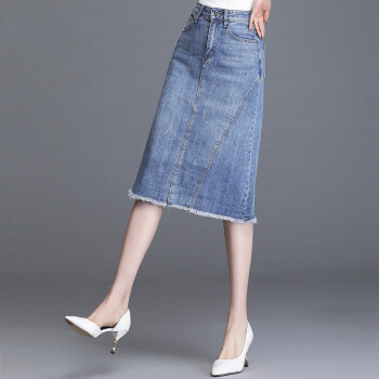 欧偲麦 牛仔半身裙女夏2020新款高腰显瘦a字中长款过膝包臀一步裙薄款 2022 牛仔 L/21 |