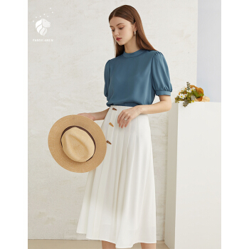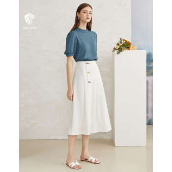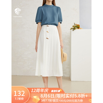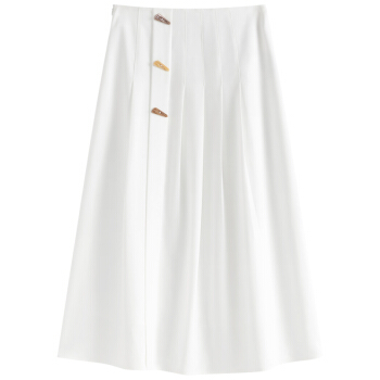范思蓝恩 2020夏季新款中长款高腰半身裙设计感小众气质压褶裙子女 白色 S |