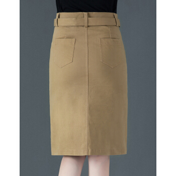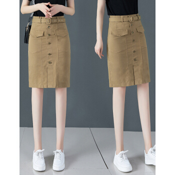 艾比新牛仔半身裙2020夏季新品韩版高腰a字短裙百搭修身显瘦不规则休闲一步包臀裙 卡其 XL |