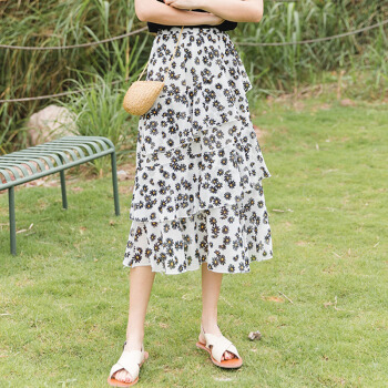 俞兆林 女装网红火爆碎花雏菊雪纺韩版高腰多层蛋糕裙半身裙 YWQZ204505 白裙 均码 |