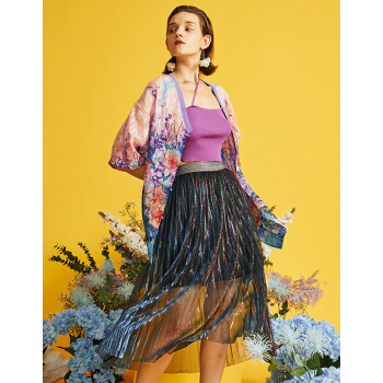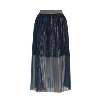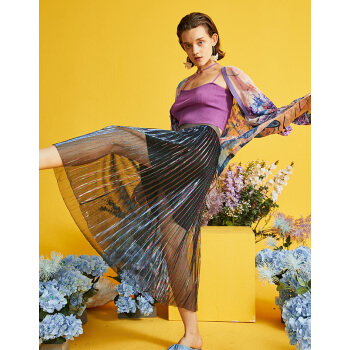 两三事 轻盈曼舞 2020早秋新款时尚彩色亮丝百褶a字半身裙 彩色 L |