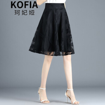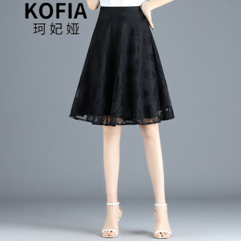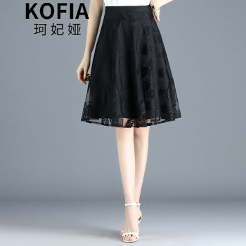 珂妃娅 半身短裙女a字裙2020夏薄款裙子黑色欧根纱中长百褶蓬蓬网纱裙 9936 黑色 L/28码-2尺1 |
