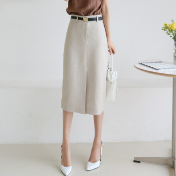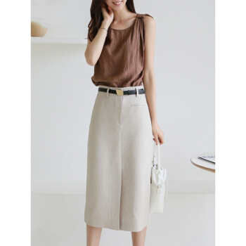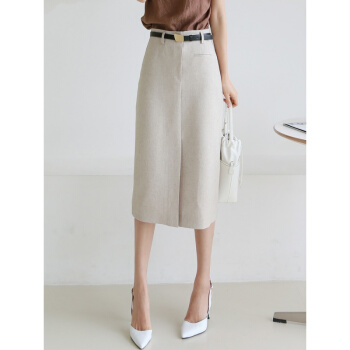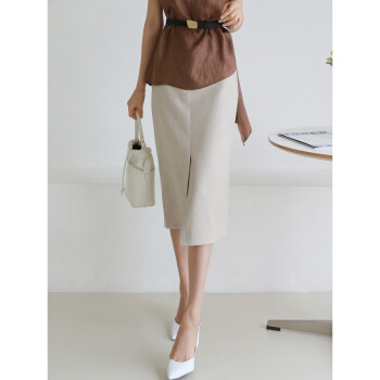 SRN轻奢女装 高腰半身裙女2020夏新款修身显瘦包臀裙气质通勤开叉一步裙中裙 灰杏色 S |