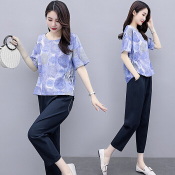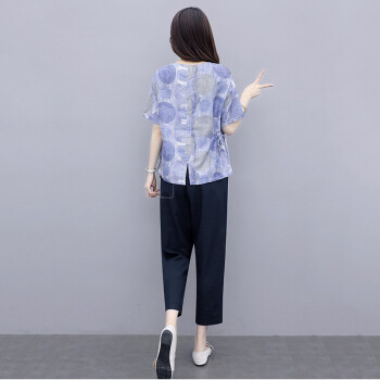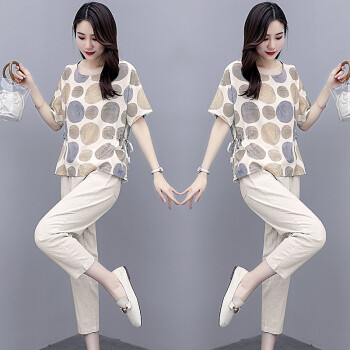 梓龄 休闲裤女棉麻套装女2020夏季新款运动休闲套装女小个子显高洋气轻熟风T恤九分裤时尚两件套 米白色 请拍对应尺码 |