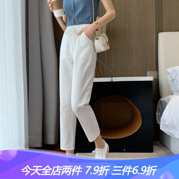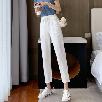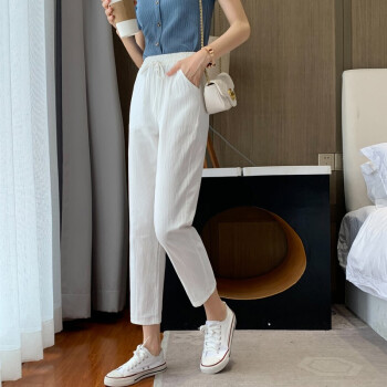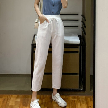 沫澜仟衣休闲裤女2020夏季薄款高腰显瘦时尚百搭裤子女棉麻轻薄透气宽松直筒九分裤女 白色 L |