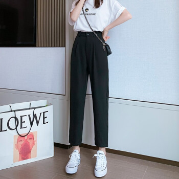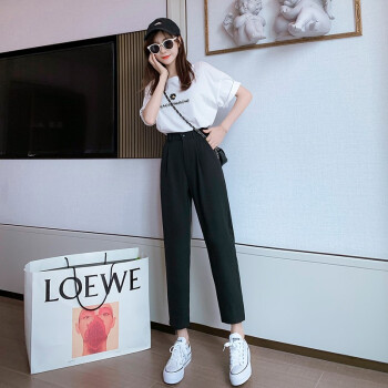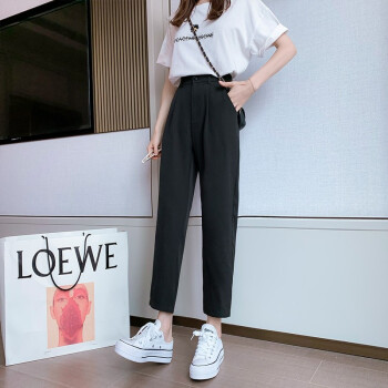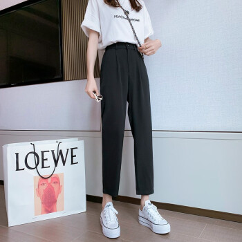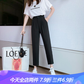 沫澜仟衣高腰显瘦休闲裤女2020夏季薄款韩版宽松直筒时尚百搭女士裤子轻薄透气九分裤子女外穿 黑色 2XL |