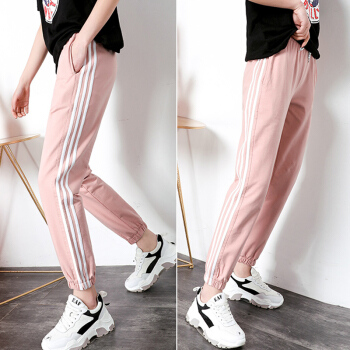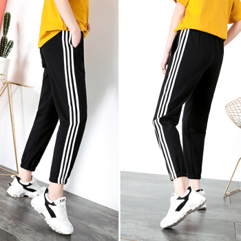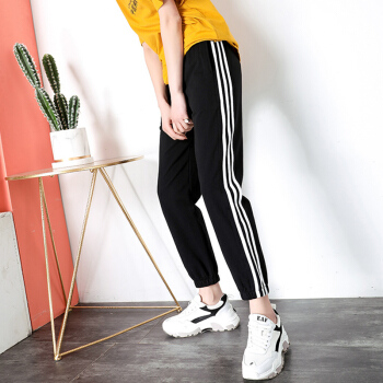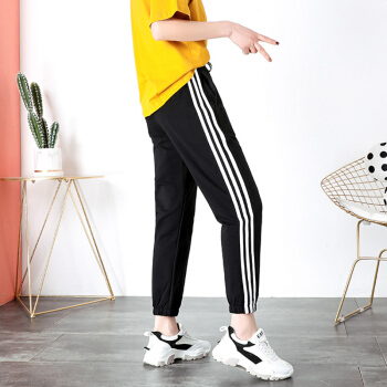 休闲裤女2020春秋新款宽松运动裤女百搭哈伦裤显瘦束脚卫裤 黑色 XS |