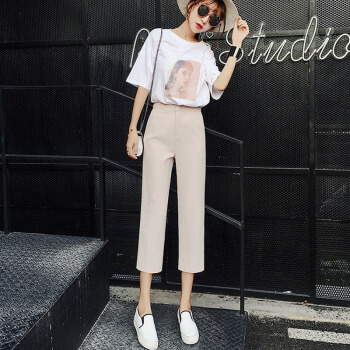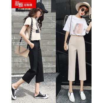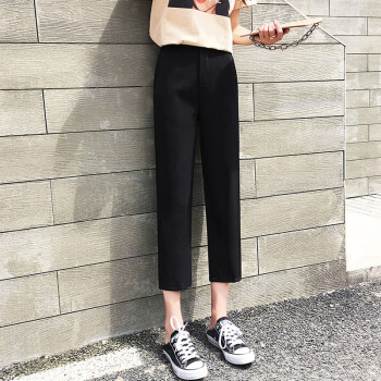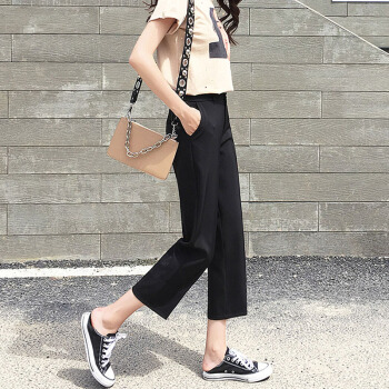 阔腿裤女九分裤2020夏新款休闲高腰垂感西装裤薄款宽松七分直筒裤秋天 黑色9分 M |