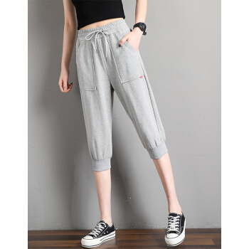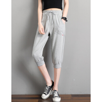 南极人 七分裤女夏季新款韩版宽松时尚运动棉休闲百搭七分中裤显瘦减龄气质休闲裤 JY305 浅灰色 请拍正确尺码 |