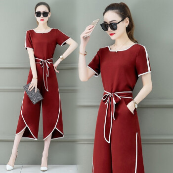 屹杨阔腿裤女套装女夏装2020新款显瘦时尚套装女小矮个子显高搭配两件套装休闲裤女 杏色 (尺码勿拍,请拍自身对应尺码) |