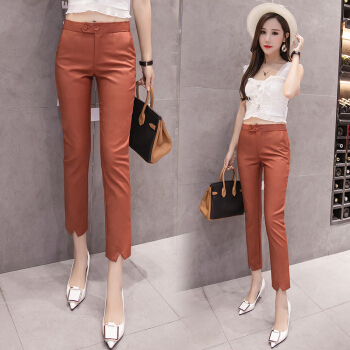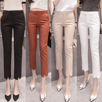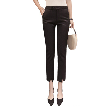 雅依芸汐 休闲裤女西裤2020新款夏季九分直筒铅笔职业工作小脚裤子女裤夏薄 黑色 L |