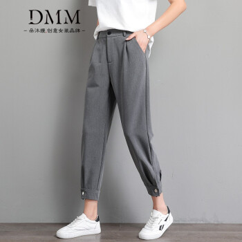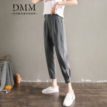 朵沐缦 束脚休闲裤女高腰显瘦2020夏季薄款哈伦裤时尚韩版百搭西装裤直筒宽松九分萝卜裤潮 1680-1薄款 灰色 L |