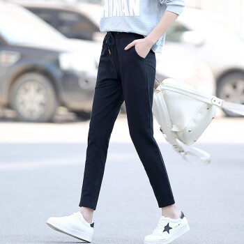 南极人 女裤2020夏季新款韩版时尚九分裤休闲裤运动裤女原宿风显瘦薄款小脚裤子简约潮 JY619 黑色 请拍正确尺码 |