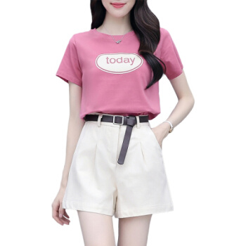 欧芙伦短裤女套装2020夏季新款女装短袖t恤休闲时尚洋气减龄小个子显高两件套9697 粉色套装 M |