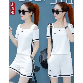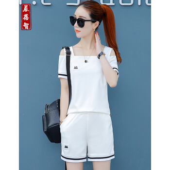 晨蓓智cbz短裤女套装2020夏季女装宽松短袖短裤学生时尚两件套跑步服休闲套装女洋气运动套装潮流 白色 M【建议95-110斤】 |