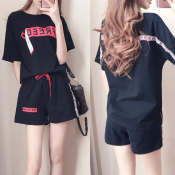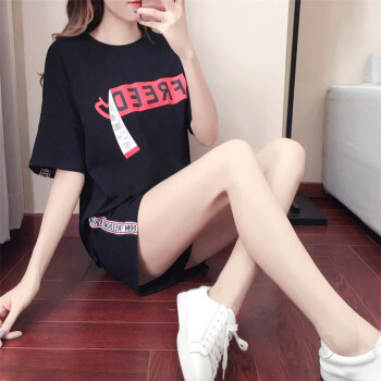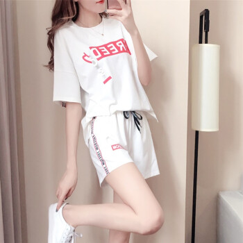 仙器 短裤女休闲套装女短裤运动服夏季新款2020网红时尚胖MM大码短袖T恤两件套潮 白色 M |