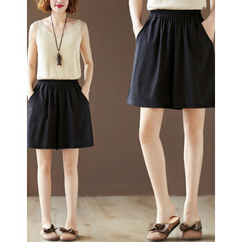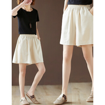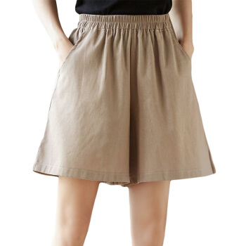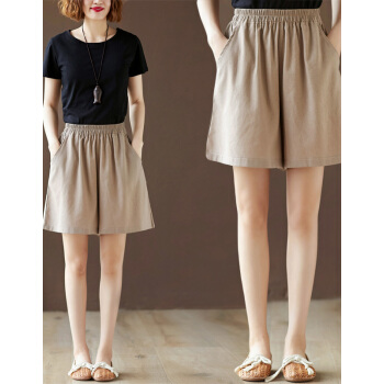 龙芝美 短裤女2020夏季新款复古亚麻宽松大码百搭显瘦刺绣棉麻阔腿五分裤女 XJM2FB078-6866-卡其色 XL |