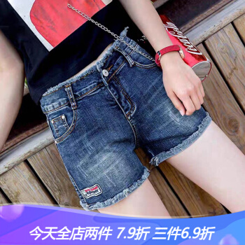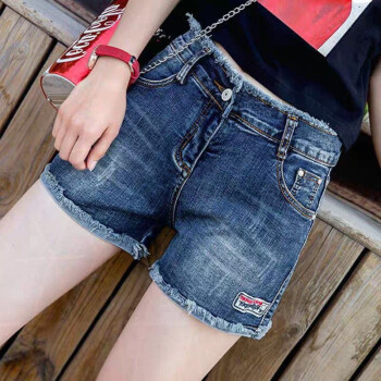 沫澜仟衣牛仔短裤女2020夏季新款韩版高腰显瘦休闲百搭裤子女宽松时尚毛边a字热裤 深蓝 26码 |