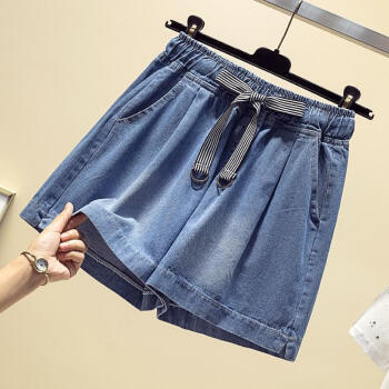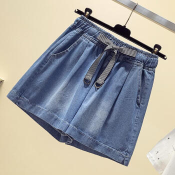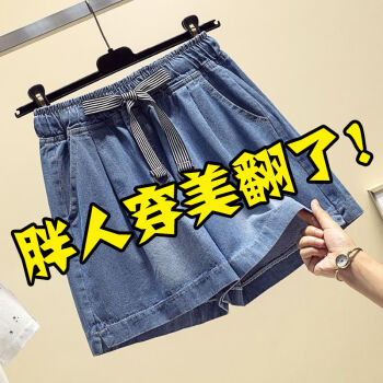 YUDA胖mm牛仔短裤女松紧高腰显瘦百搭学生a字版阔腿裤女适合遮大粗腿牛仔短裙裤女 蓝色 L 【建议100-115斤】 |