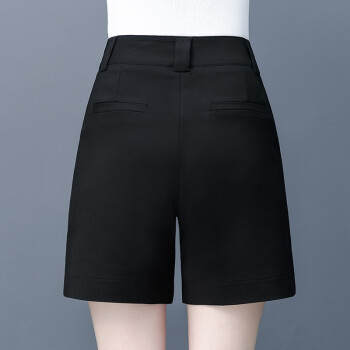 吧吆吆白色短裤女夏宽松2020新款高腰直筒西装五分中裤显瘦阔腿休闲裤薄 黑色 XL |