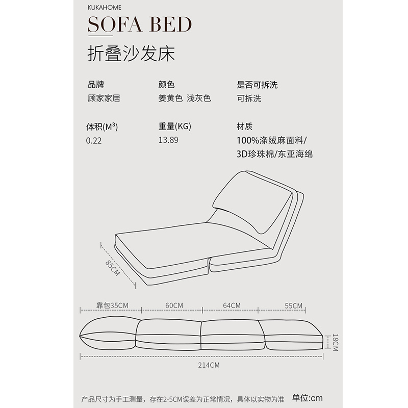 多功能折叠沙发床XJ【涤绒麻/姜黄】 |