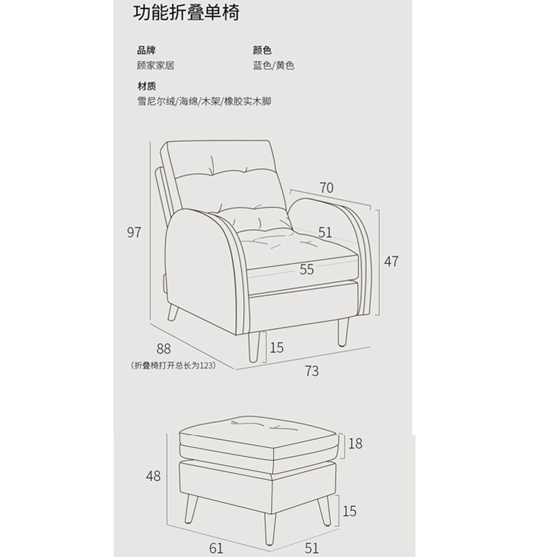 拼色懒人躺椅 含脚蹬XJ【海绵/木架/黄色】 |