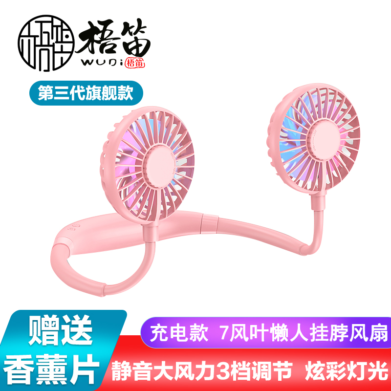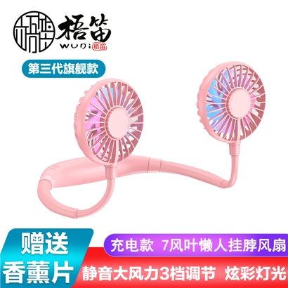 【超值单品】【带彩灯+香薰】第三代旗舰款7叶片挂脖风扇USB充电型【塑料+硅胶/粉色】 |