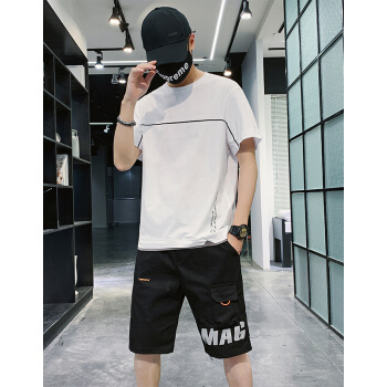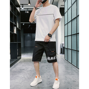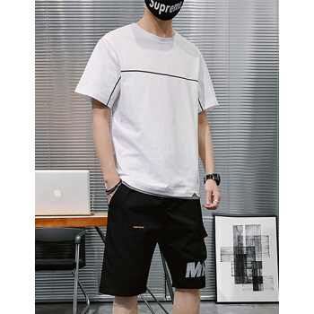 克伦苏 运动套装男夏季卫衣男户外运动服跑步服装男上衣打底衫韩版休闲学生圆领百搭两件套 白色 L |