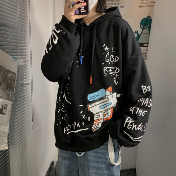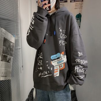 潮至 连帽卫衣男2020夏秋新款ins港风长袖T恤男士宽松大码休闲外套男装上衣 牛仔蓝 S |