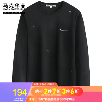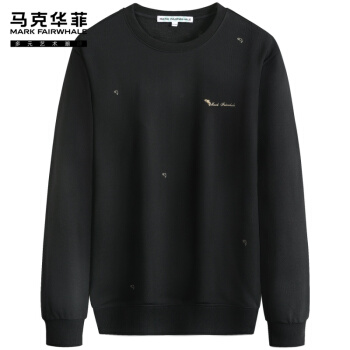 马克华菲卫衣男春秋2020秋季新款情侣套头圆领男士刺绣长袖T恤 潮 黑色 175/92A/L |