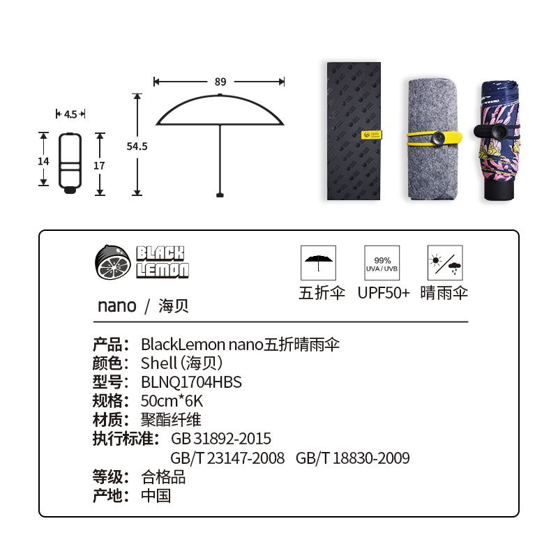 晴雨两用迷你口袋伞【碰击布+黑胶涂层/海贝】 |