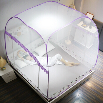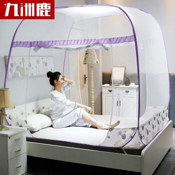 九洲鹿 蚊帐家纺 免安装方顶蒙古包三开门蚊帐有底拉链钢丝可折叠 雪绒花 紫 1.8米床 |