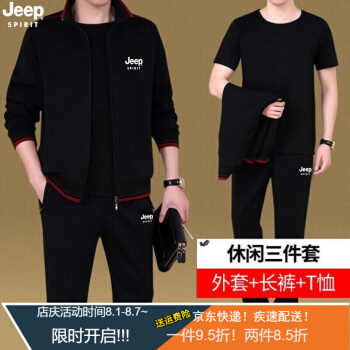 Jeep(吉普)中老年套装男春秋款夏款短袖T恤短裤男爸爸装休闲套装中年运动服装男秋季三件套 8306深灰两件套 XL (建议体重130-145斤) |