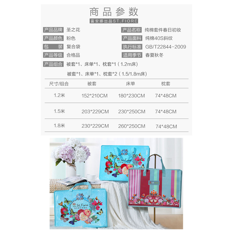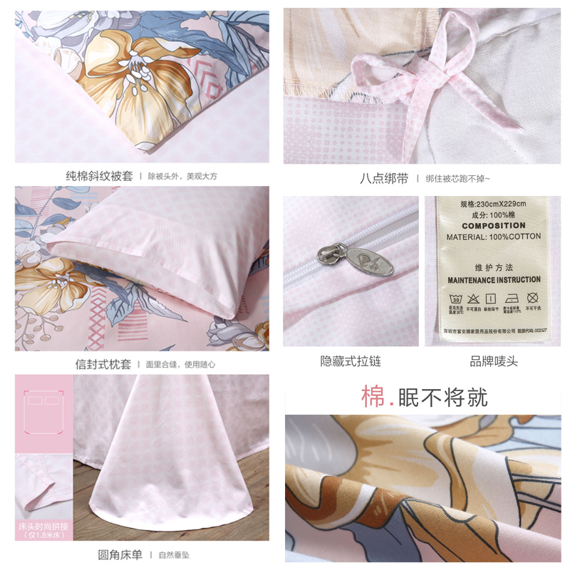 春日初妆 床单四件套(被套1件床单1件枕套2件)(适合1.8米床)【纯棉/粉】 |