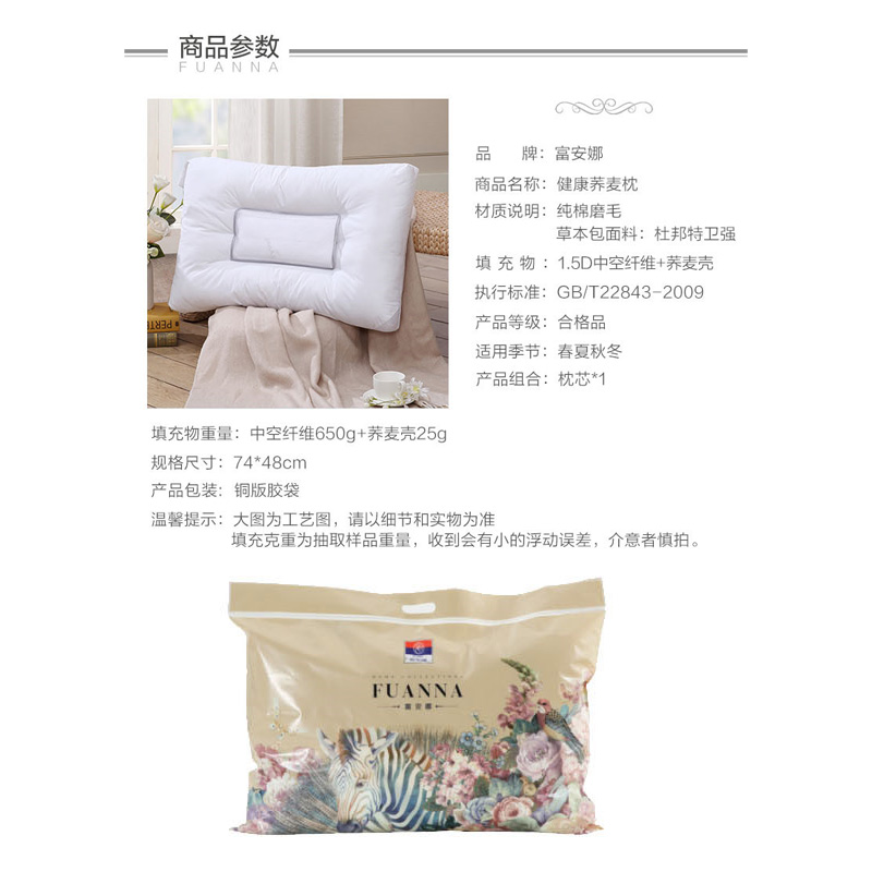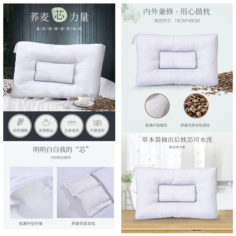 健康荞麦枕 (枕芯两只)【面料:纯棉磨毛;填充:中空纤维+荞麦壳/白】 |