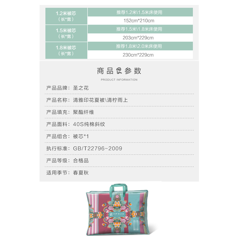 清柠雨上 纯棉印花夏被(被芯1件)(适合1.8米床)【面料:纯棉;填充:聚酯纤维/绿】 |
