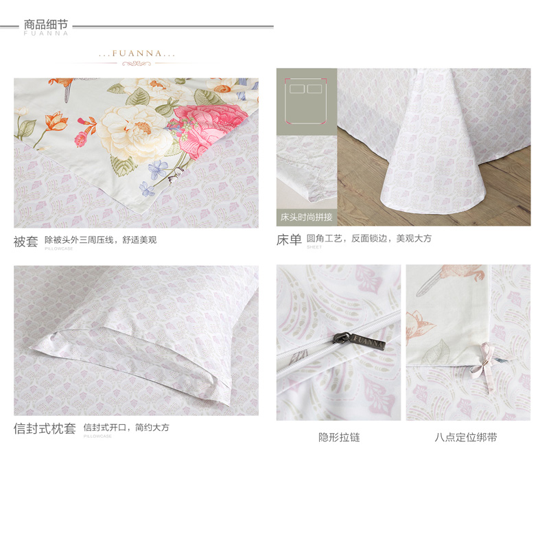 花舞悠然 床单四件套(被套1件床单1件枕套2件)(适合1.5米床)【纯棉/粉色】 |
