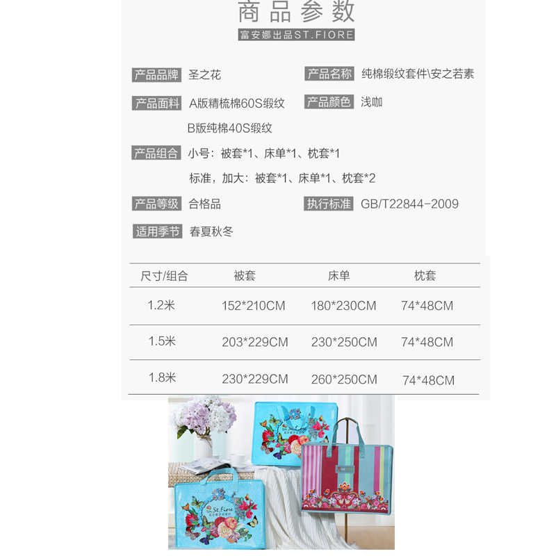 安之若素 床单四件套(被套1件床单1件枕套2件)(适合1.5米床)【纯棉缎纹/浅咖】 |