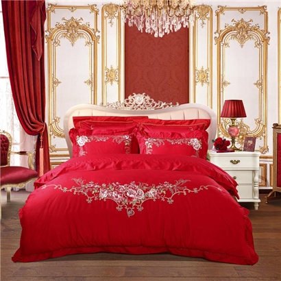永恒爱恋 床单六件套(被套1件床单1件枕套4件)(适合1.5米床)【纯棉提花/红】 |
